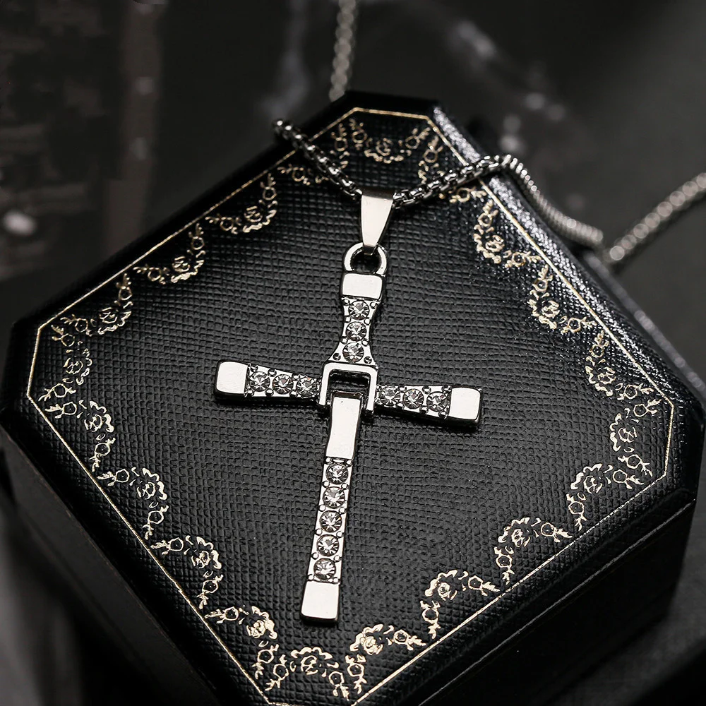 Ожерелье с кристаллами Dominic Toretto, Форсаж, знаменитости Вин Дизель, цепочка из нержавеющей стали, мужской кулон в виде креста