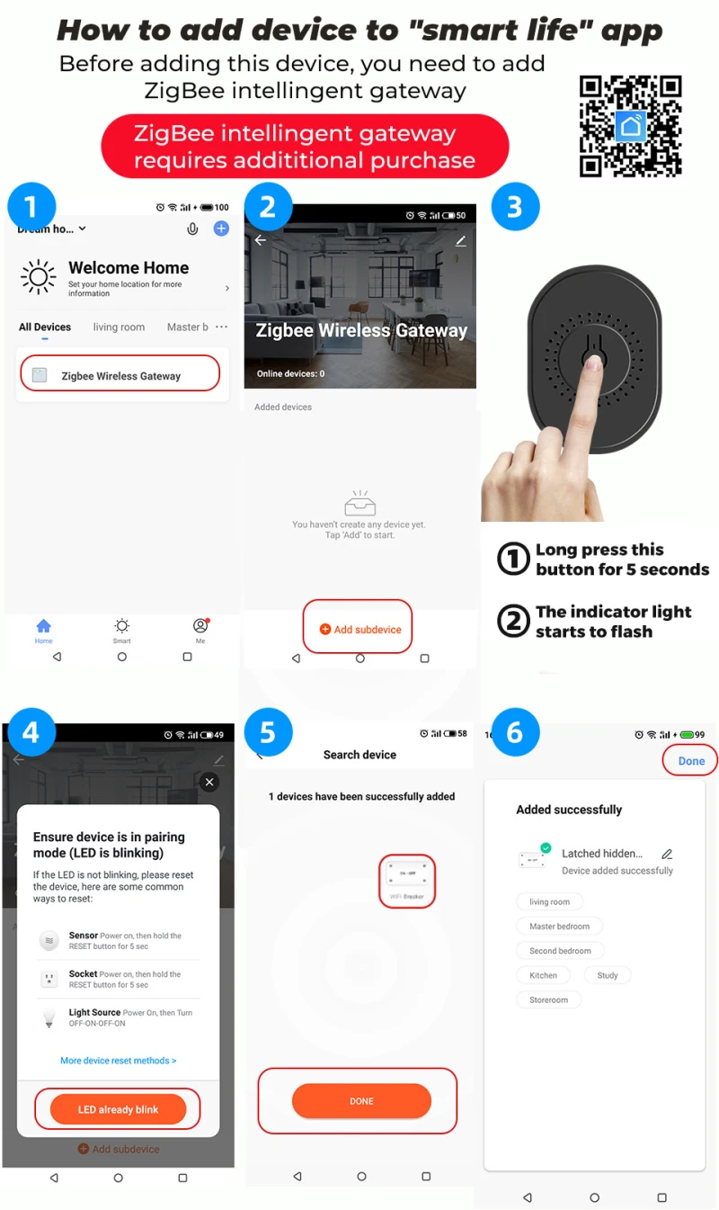 【Требуется шлюз 】 вам нужен концентратор для подключения устройства к Интернету. Устройство отправляет информацию к шлюзу, и Шлюз передает информацию к мобильный телефон.