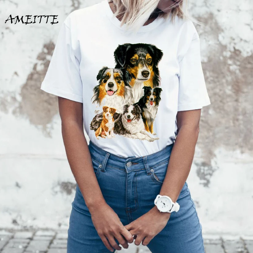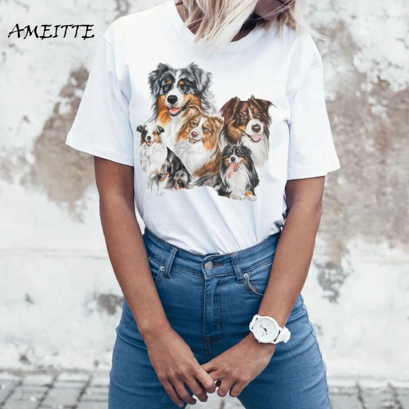 Футболка женская летняя с коротким рукавом и принтом австралийская пастушка