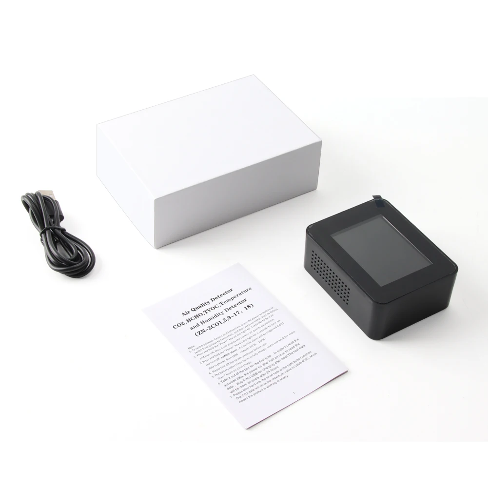 Многофункциональность 1,5 В 1: профессиональный измеритель качества воздуха оснащен усовершенствованным сенсором и алгоритмом распознавания для точного измерения данных HCHO, CO2, TVOC, температуры и влажности, низкой погрешности, легко узнать качество воздуха вокруг вас. Это также может предложить среднее значение для каждого воздуха и общего качества окружающей среды, индикация цвета, которая даст вам знать, что вам нужно принять некоторые меры, если ваш воздух небезопасен.