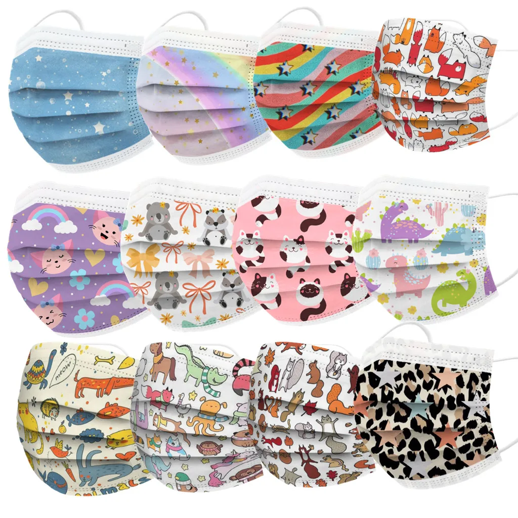 Маска детская одноразовая трехслойная с мультяшным принтом, маска для лица, маска для Хэллоуина, косплея, 10 шт.