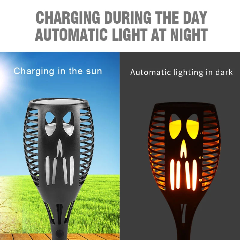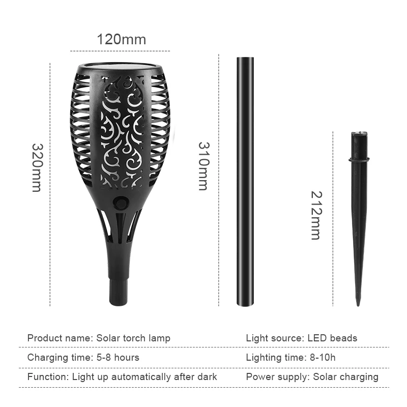 -Питание от солнечной энергии: это наружное пламя солнечных факелов собирает солнечную энергию в течение всего дня под прямыми солнечными лучами, затем включается автоматически в сумерках. Светильник работает на солнечной энергии, поэтому вы можете разместить его в любом месте под прямым солнечным светильник!