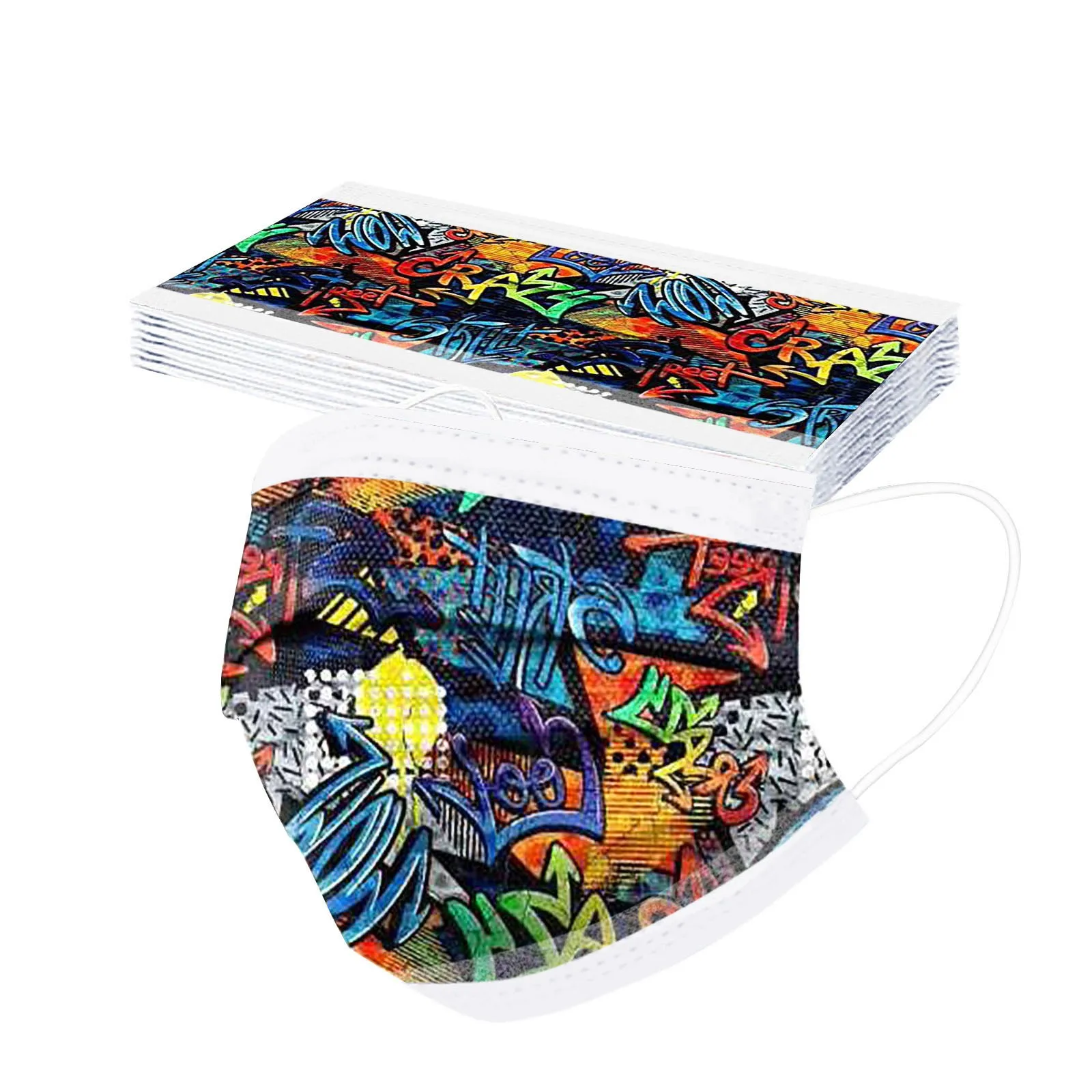 Маска одноразовая детская с принтом граффити, 3 слоя, 10-100 шт.