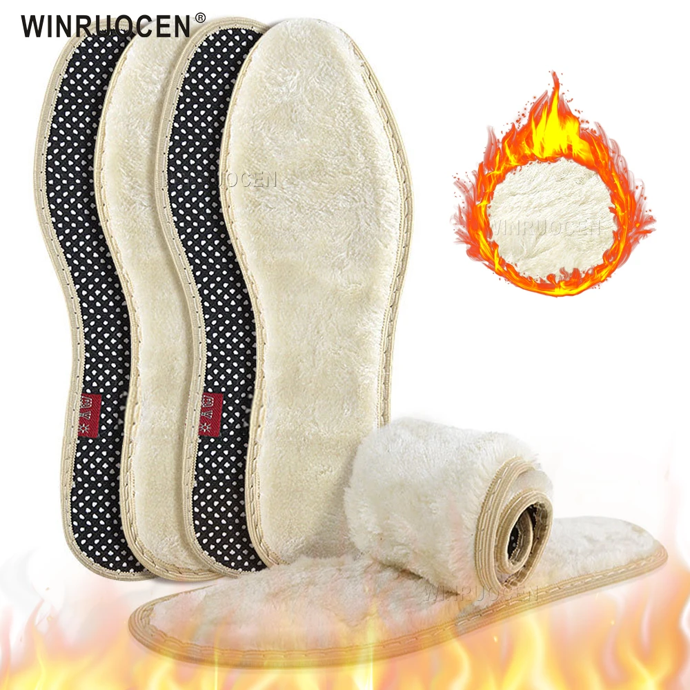 Winruochen1 пара, натуральные стельки из овчины, зимние меховые шерстяные стельки для мужчин и женщин, теплые мягкие толстые теплые кашемировые зимние сапоги