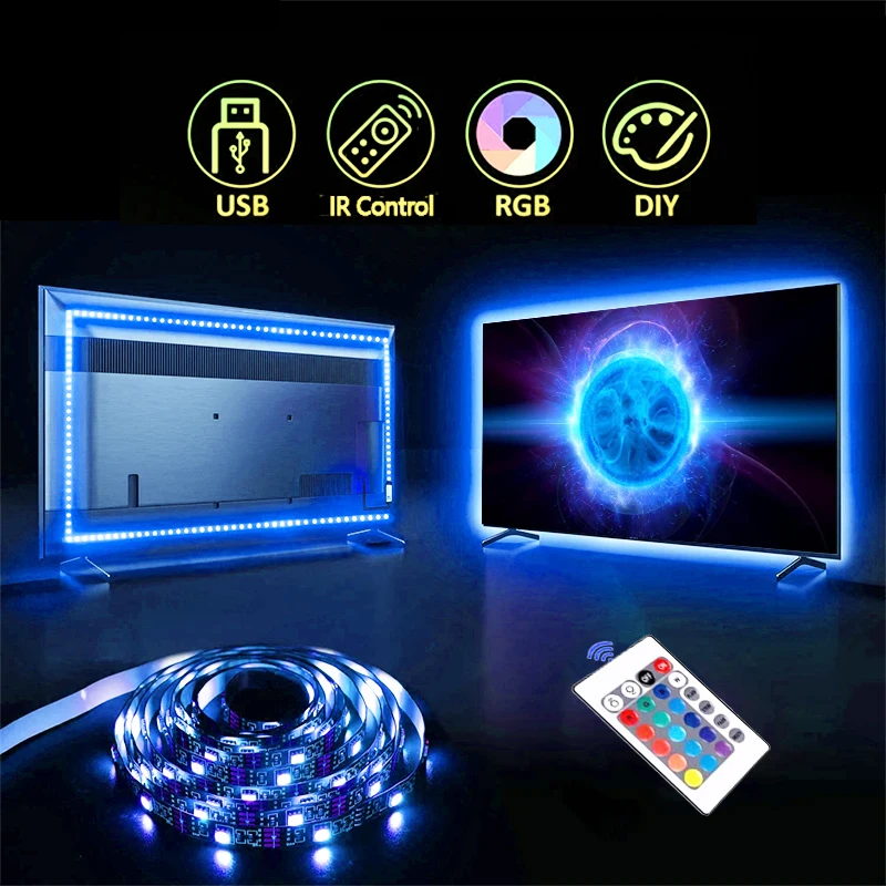 Цветная RGB световая лента 2835 DC5V подсветка для ТВПК Питание от USB светодиодные лампы для комнаты с дистанционным управлением светодиодная настенная спальня гибкий диод