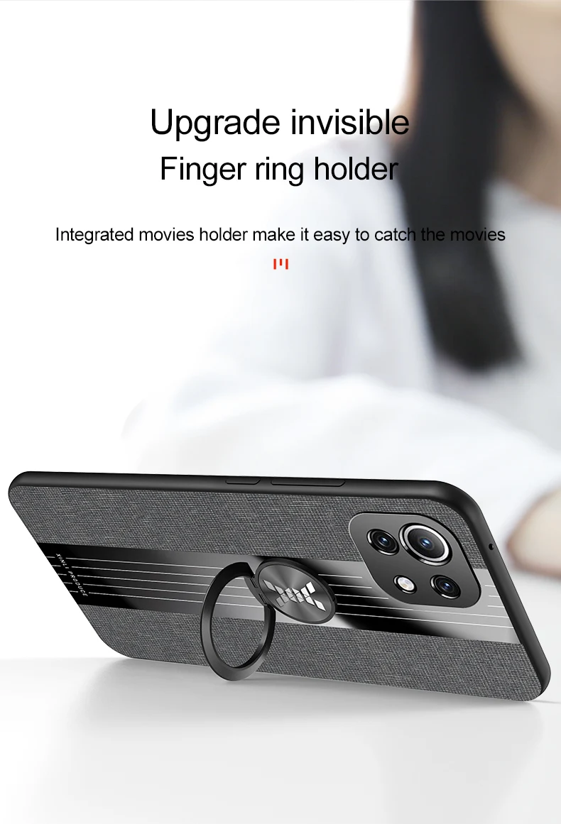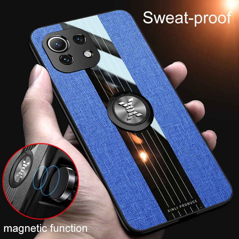 Чехол с кольцом-держателем для Xiaomi Mi11 Mi 11 Lite, тканевая тек...