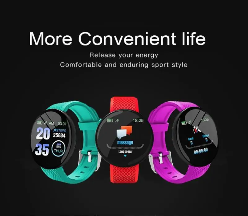 Умные часы D18 с поддержкой Bluetooth, мужские умные часы с измерением артериального давления, женские спортивные умные часы