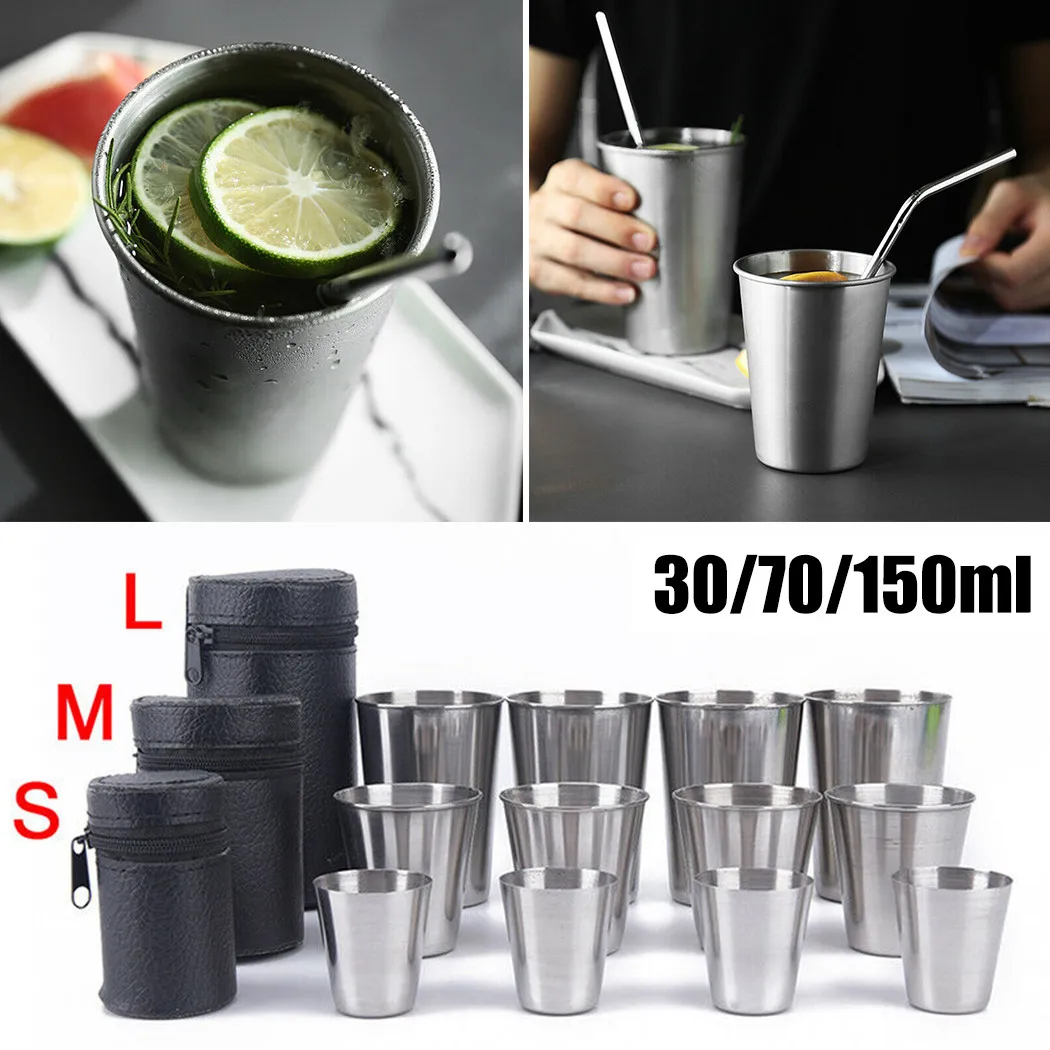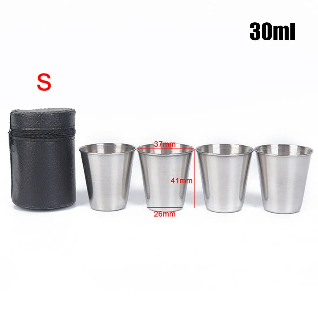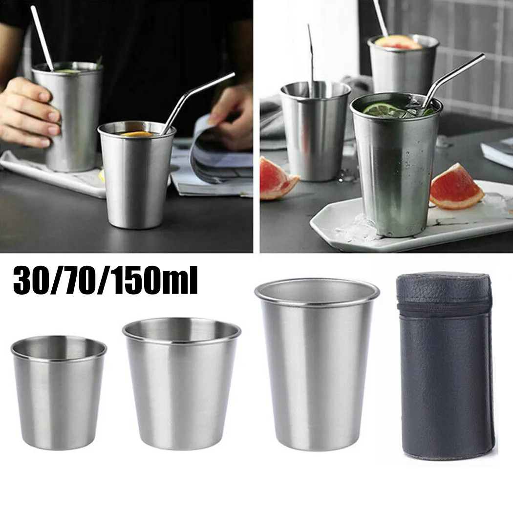 Кофейная кружка, 4 шт., 3070150 мл, из нержавеющей стали, портативная, для кемпинга, питьевой воды, кофе, чая, пива, вина, с чехлом
