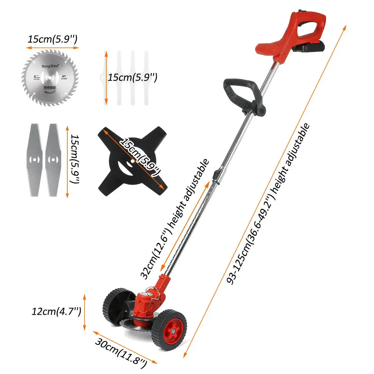Электрический триммер для травы, 12800 мАч, аккумуляторная газонокосилка, беспроводной триммер для травы, садовый инструмент с 2 аккумуляторами и колесами