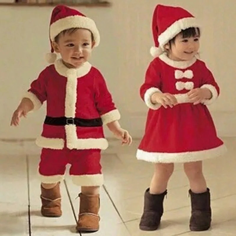 Детское зимнее платье, рождественское платье для маленьких девочек, милый костюм Санта-Клауса, детский косплей, одежда с длинными рукавами для маленьких мальчиков