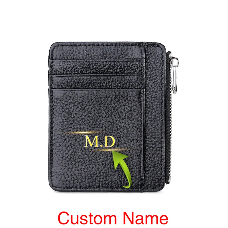 Прочный тонкий кошелек с бесплатной гравировкой для мужчин и женщин, дорожный кошелек для банковских карт, удостоверения личности, Женский кошелек на молнии, Многоцветный кошелек для монет, мини-кошелек для денег