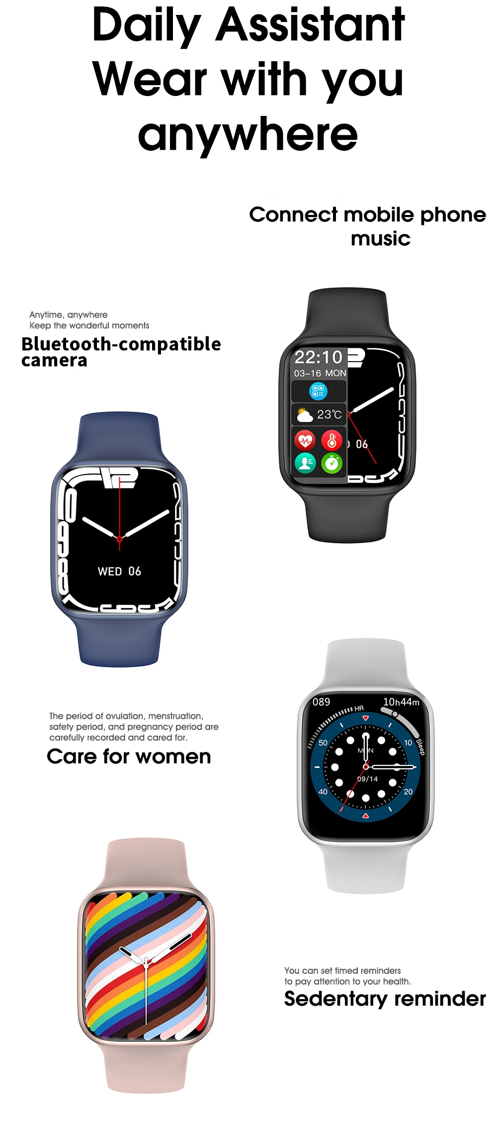 1. Следите за своим здоровьем:Пульс/кровяное давление/Монитор кислорода в крови, ЭКГ, трекер сна.2. Хороший помощник для тренировки:Шаги, расстояние, сожженные калории, спортивный режим.3. Хороший помощник для повседневной жизни:Bluetooth-совместимые телефонные звонки, синхронизация уведомлений, голосовой помощник, трекер периода, пульт дистанционного управления камерой, секундомер, bluetooth-совместимая музыка, будильник, напоминание о сидячем положении, поиск моего телефона, поднятие до пробуждения, блокировка экрана пароль, пользовательские лица и т. Д.