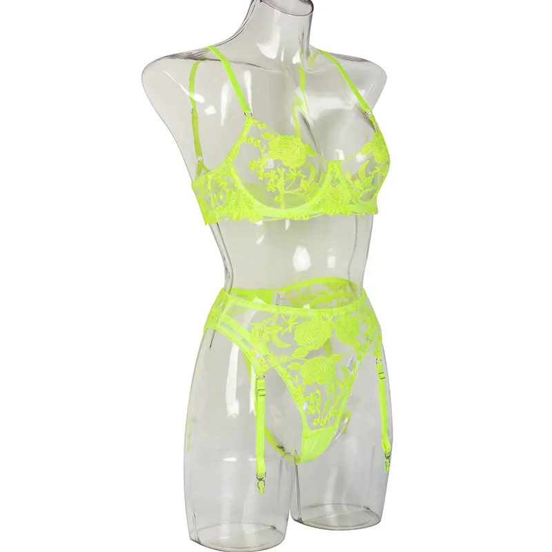 Комплект женского нижнего белья с цветочной вышивкой, 3 предмета
