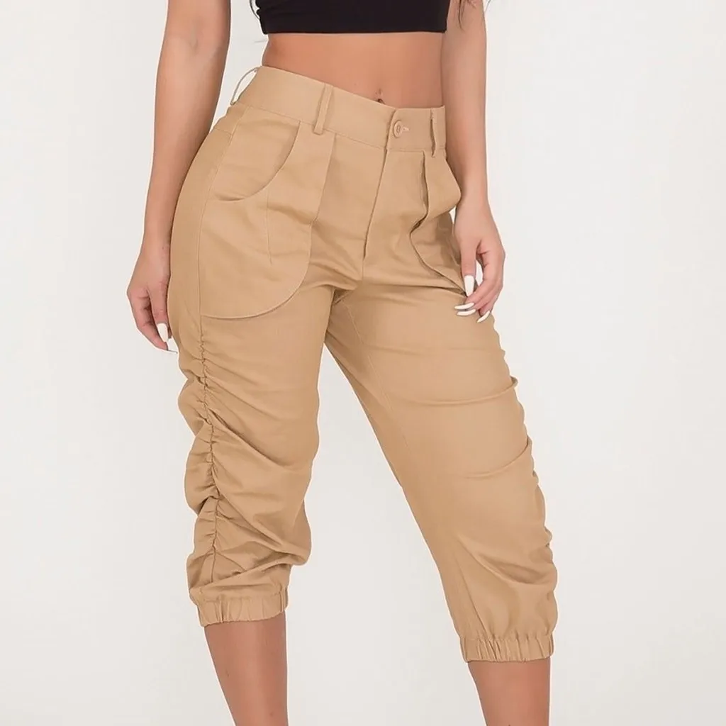 Брюки-карго Женские повседневные, Спортивные укороченные штаны, шаровары для бега, для фитнеса, с карманами, свободные короткие штаны