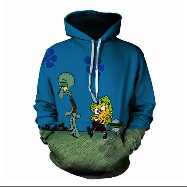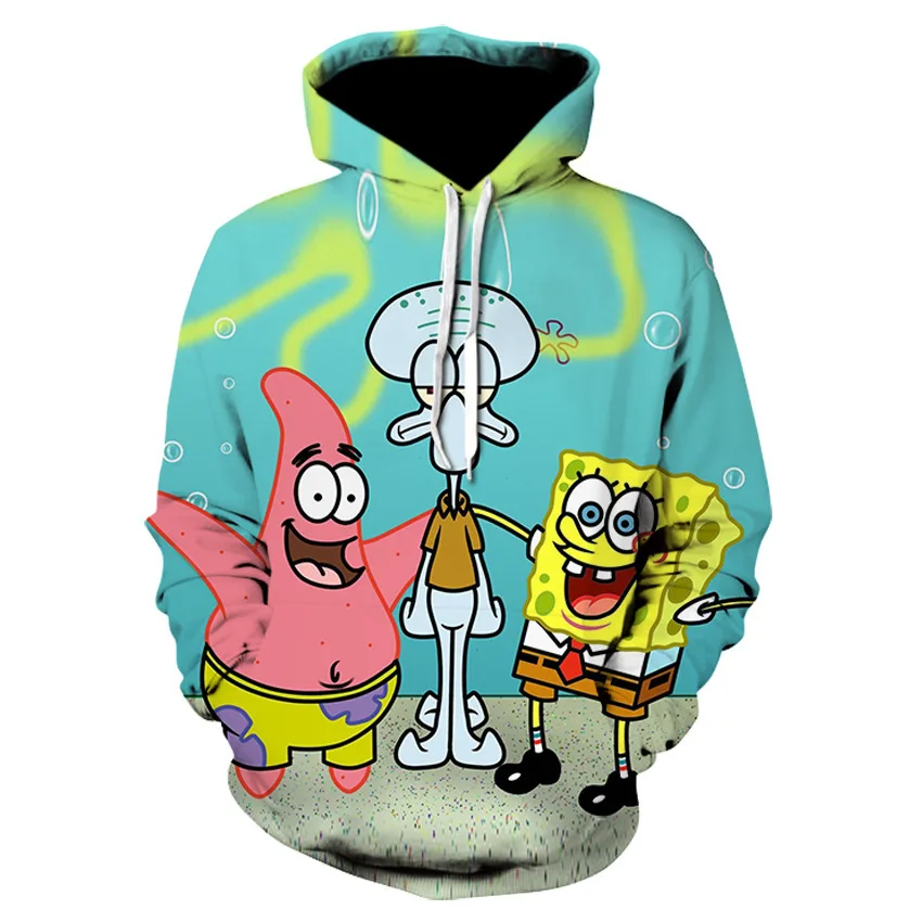Новинка весна-осень 2021, забавная желтая толстовка с капюшоном, мужская толстовка с 3D принтом в виде губки, мужской мультяшный пуловер