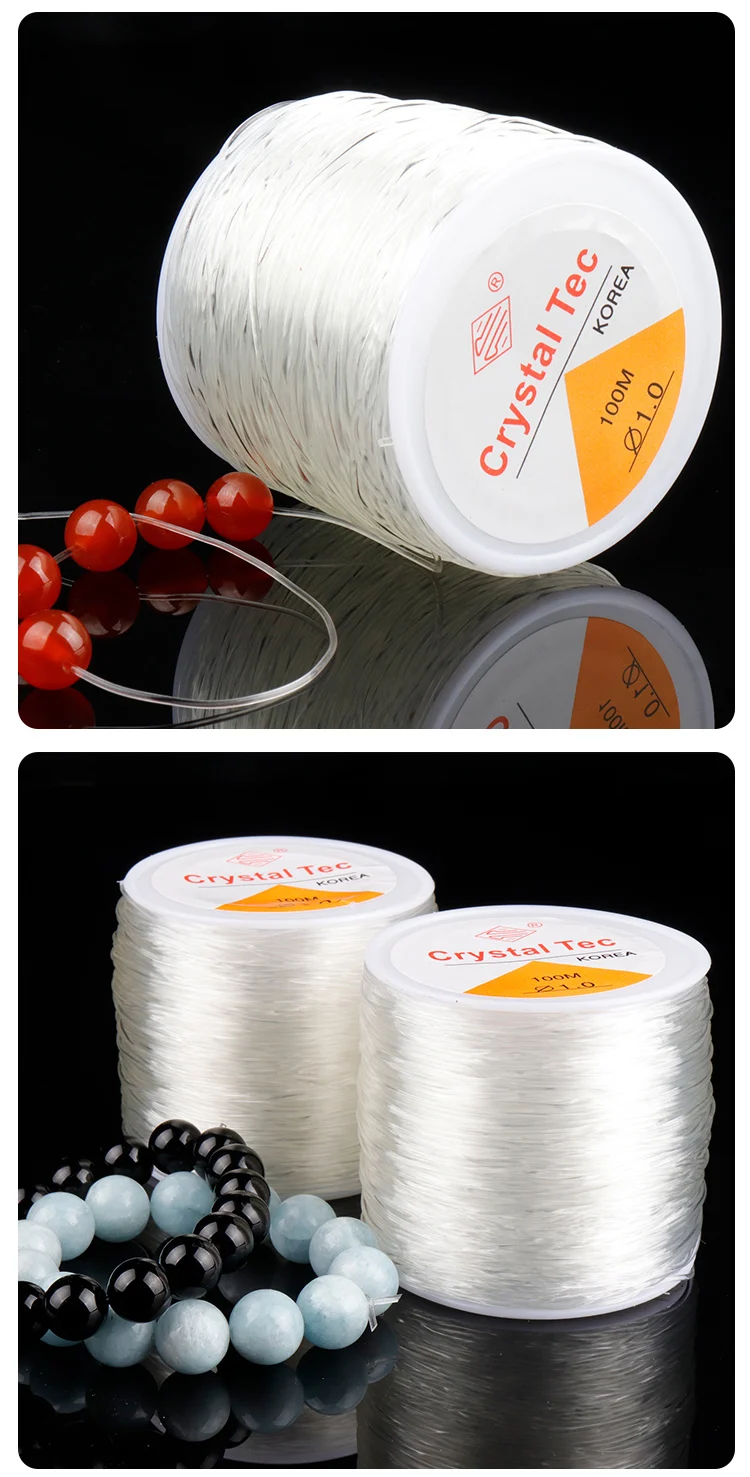 Прочная эластичная нить для бисероплетения, 100 м, шнур для изготовления ювелирных изделий, ожерелий, браслетов, бусины сделай сам, растягивающаяся нить, толщина 0,5-1 мм