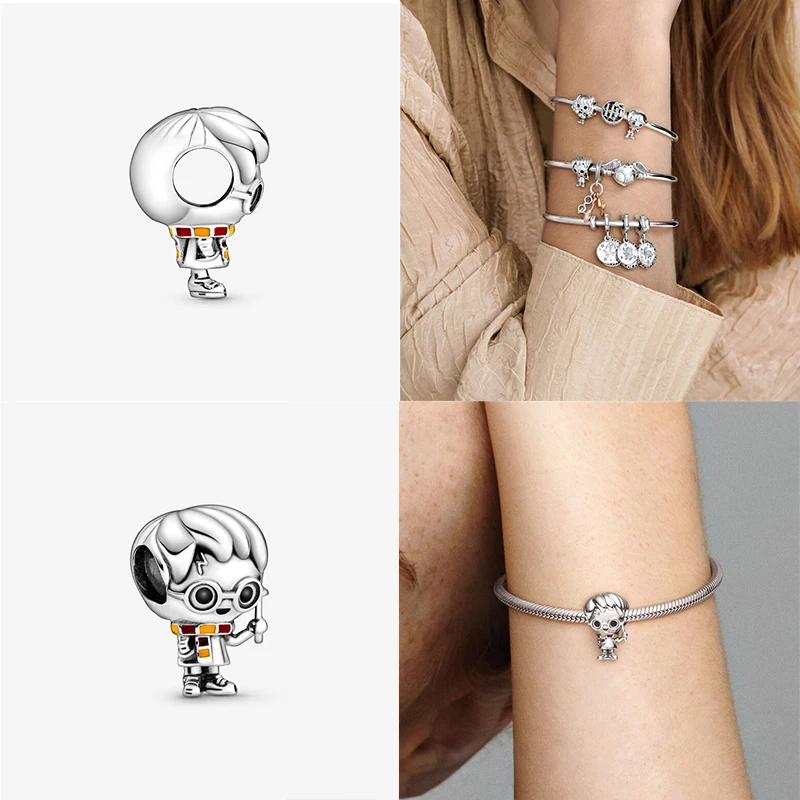 Женский браслет Pandora из стерлингового серебра 925 пробы с эмалью для маленьких мальчиков и женщин, ювелирное изделие