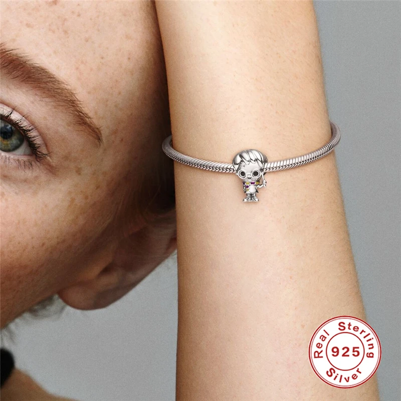 Эмалированные Шарм-бусины в очках для женщин, серебро 925 пробы