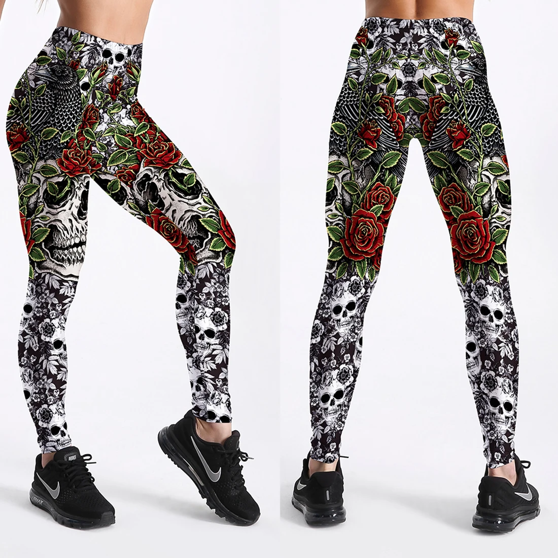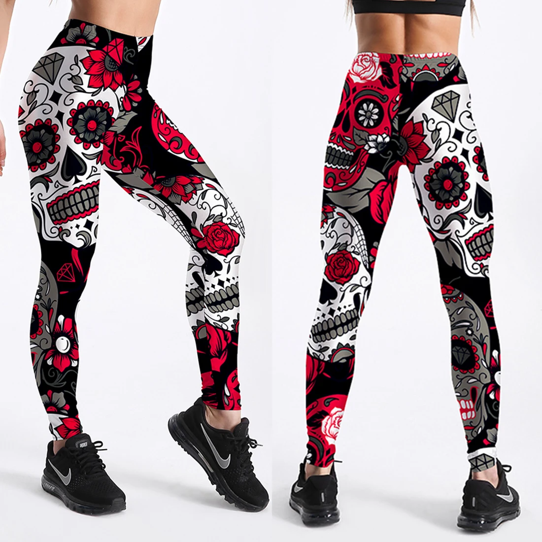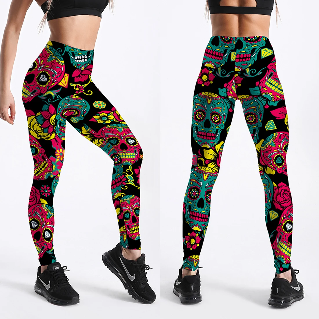 Леггинсы женские, с высокой талией, для фитнеса, с принтом черепа и...