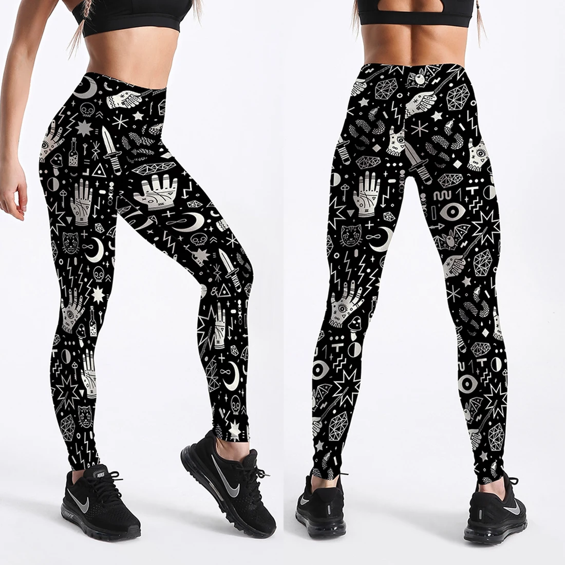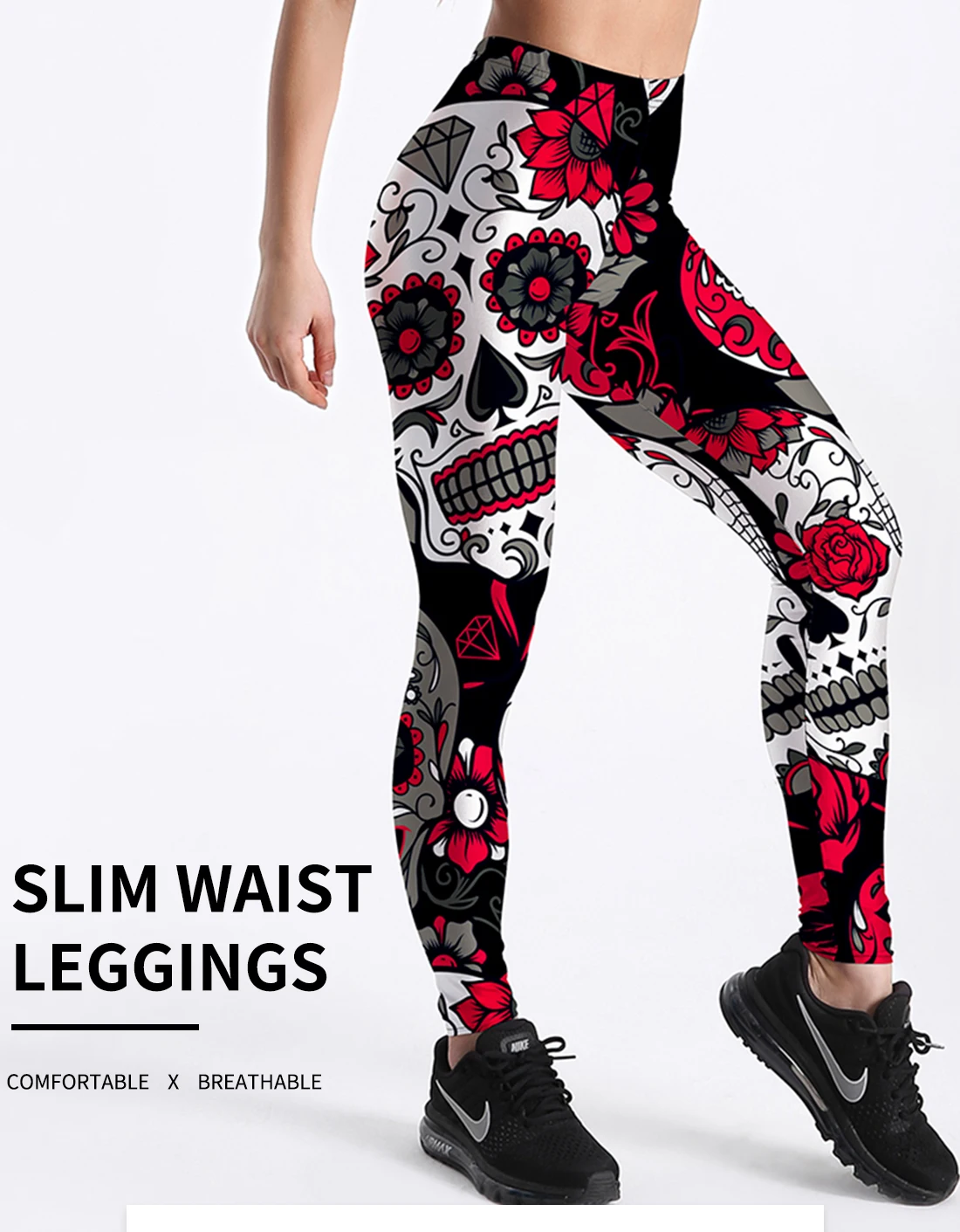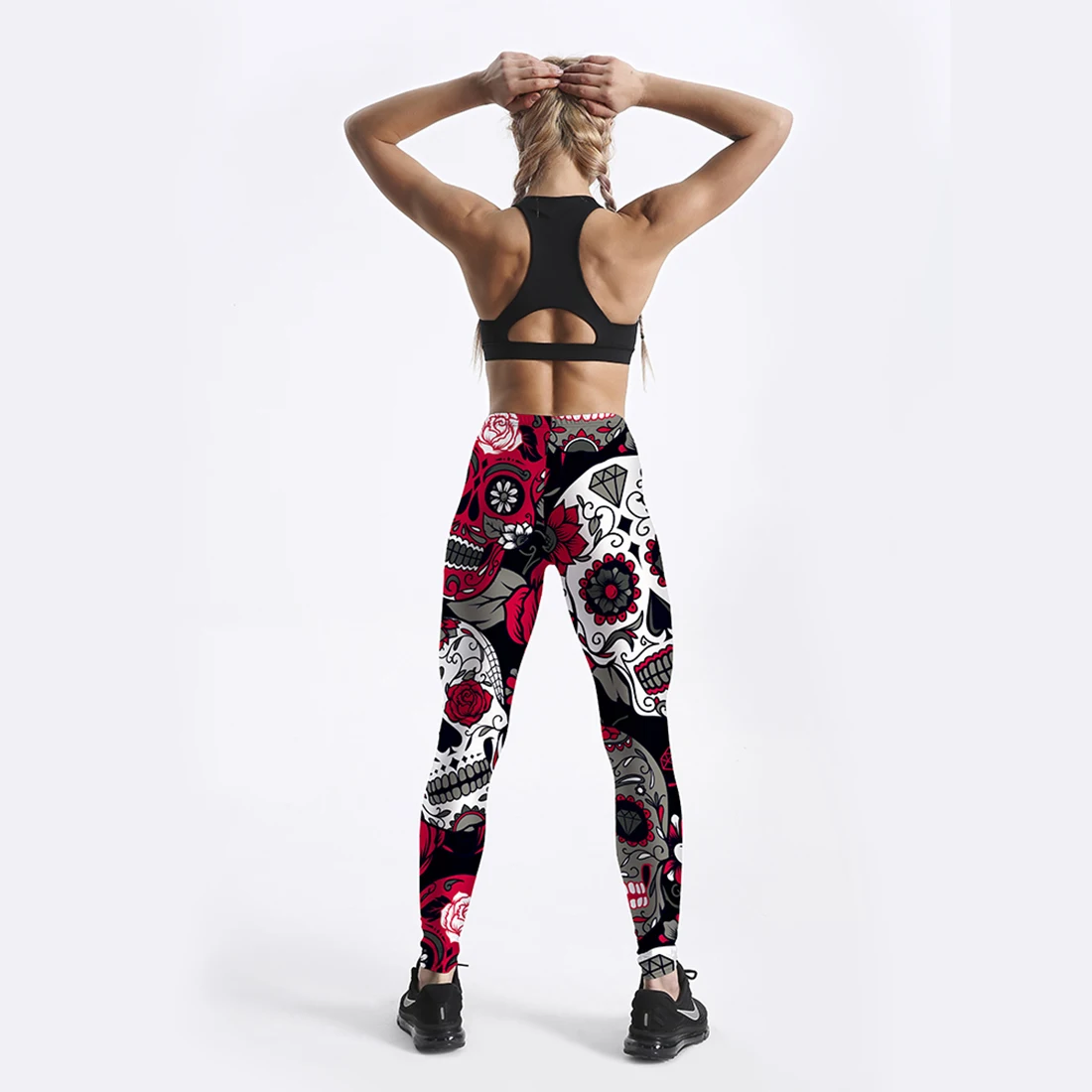Леггинсы женские, с высокой талией, для фитнеса, с принтом черепа и...