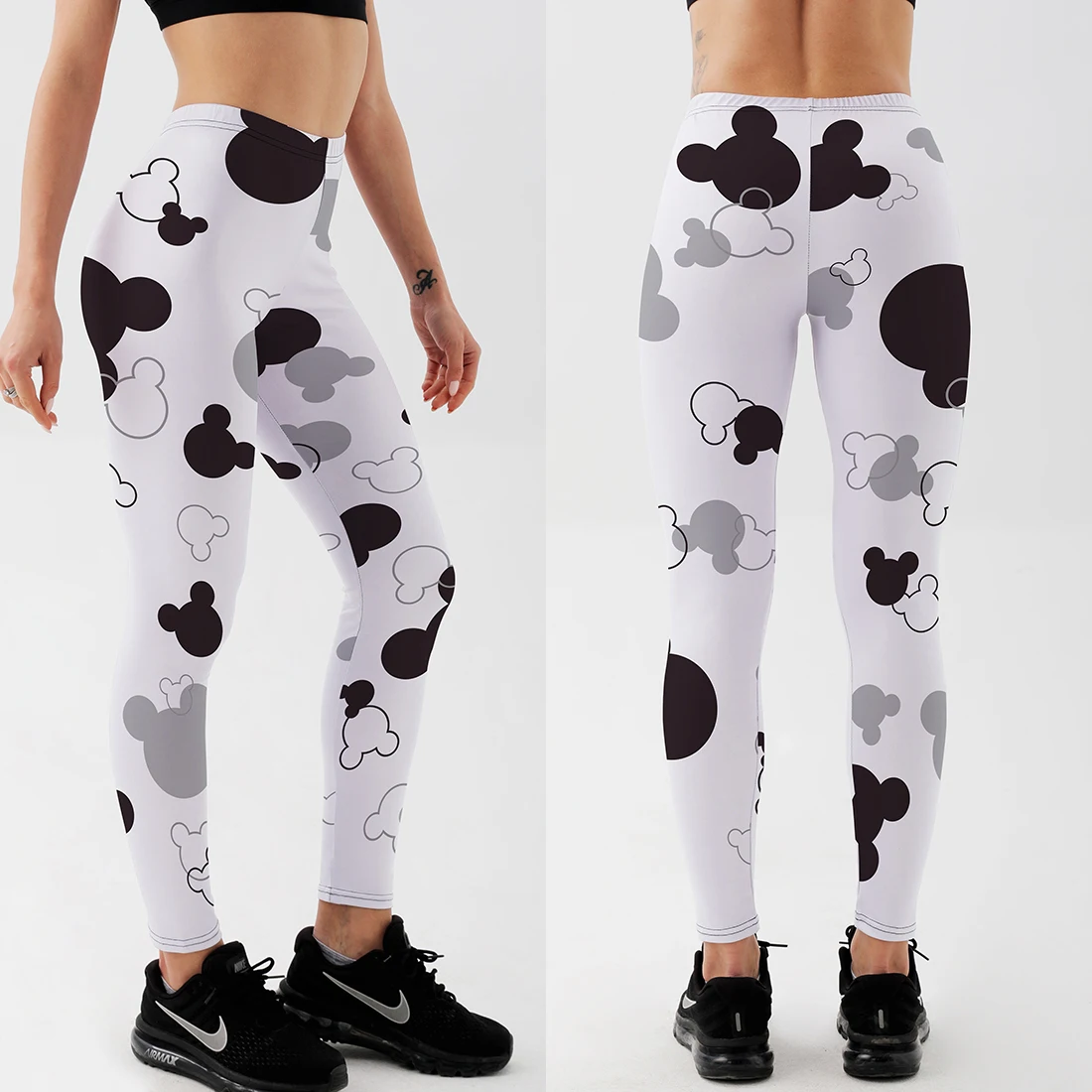 Симпатичные Леггинсы с мультяшным принтом мышки, модные женские лег...