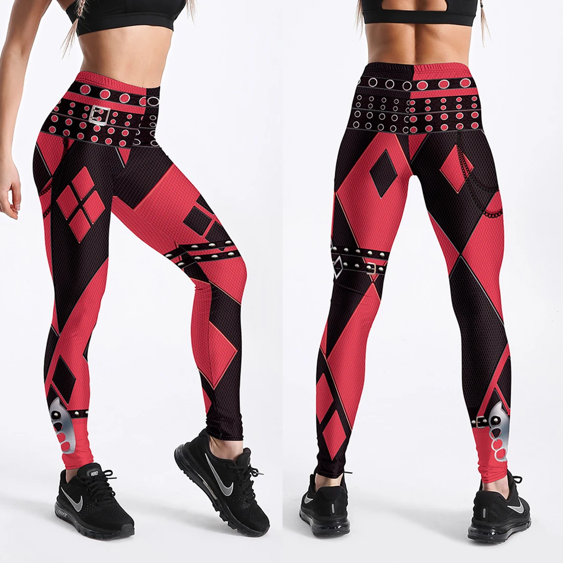 Леггинсы женские с высокой талией, пикантные красные спортивные лег...