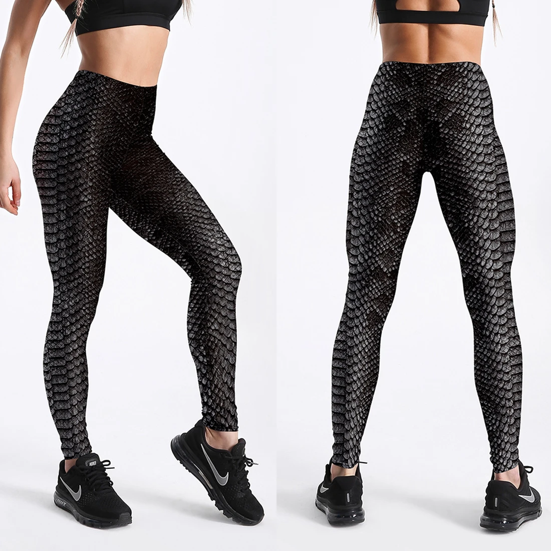 Женские эластичные леггинсы из полиэстера с принтом змеиной кожи, н...