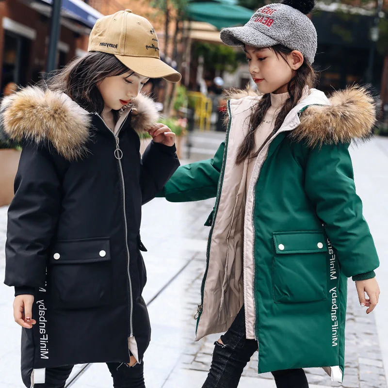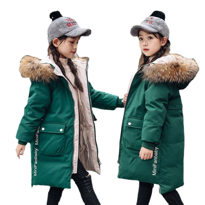Одежда для девочек зимняя теплая куртка с капюшоном Длинная одежда ...