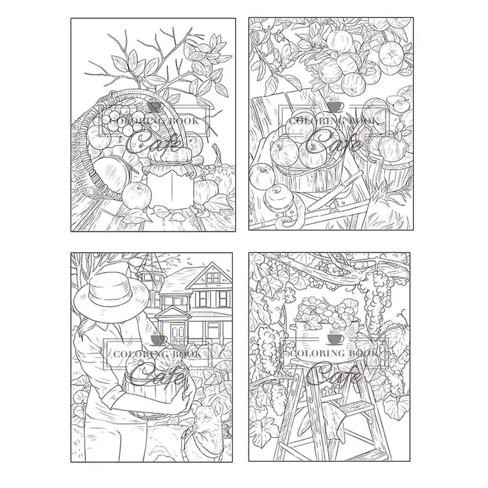 Альбом для раскраски Страна осень: с очаровательными осенними сценами, красивыми животными на ферме и расслабляющими пейзажами, 25 страниц