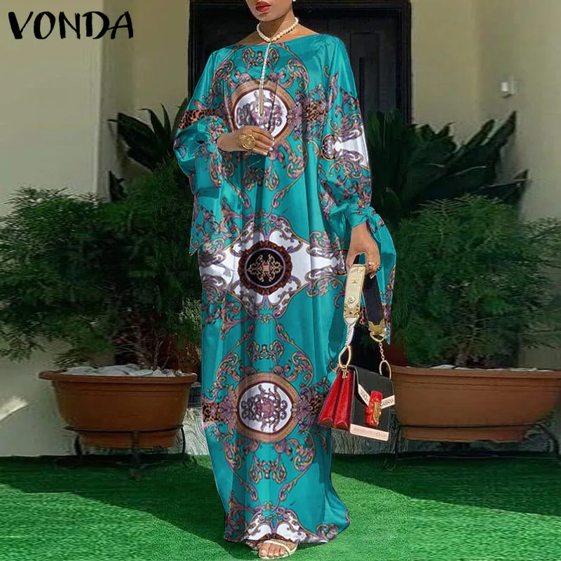 Женское платье для вечерние 2022 VONDA, винтажное женское свободное богемное Платье с принтом, элегантное женское платье для вечерние