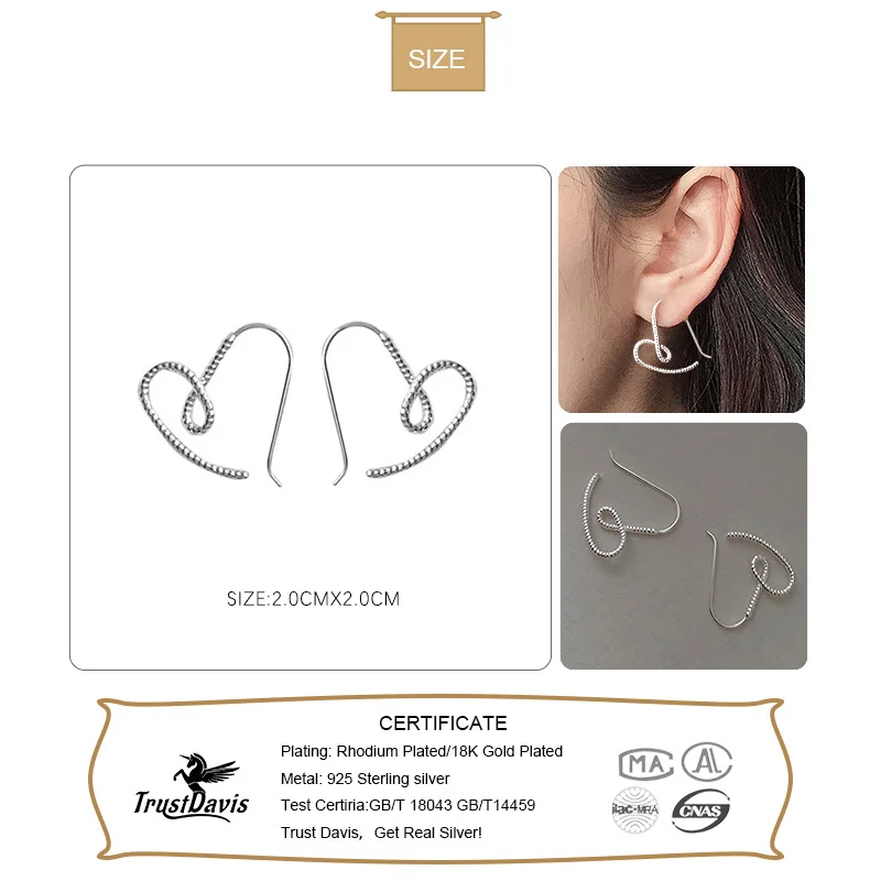 TrustDavis новые серьги-кольца из настоящего серебра 925 пробы с романтическим сердцем для женщин ювелирные изделия для свадебной вечеринки DA2411