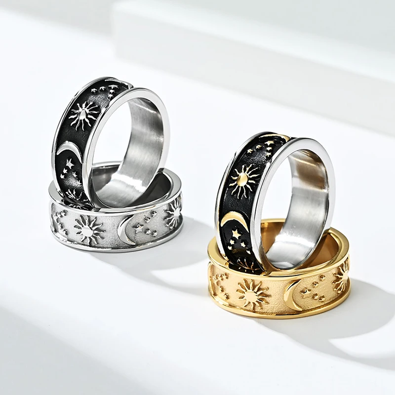 Кольцо из нержавеющей стали в богемном стиле со звездами, луной, солнцем, подарок на День святого Валентина для друзей, ретро тренд, модные ювелирные изделия, оптовая продажа