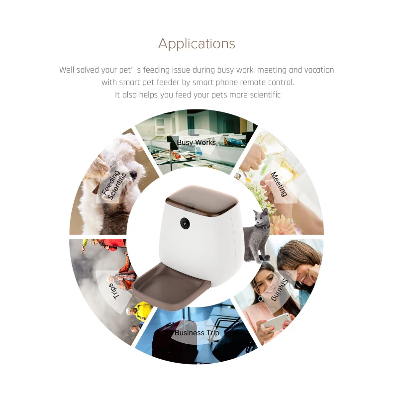 Интеллектуальный Автоматический Питатель для домашних животныхПравильное распределение во времениПриложение/Управление облаком Джем и сигнализация нехваткиНевидимый слот для мобильного питанияТочное Питание: встроенный модуль взвешивания, точно записывает потребление корма для домашних животныхЗапись вызова: Поддержка нескольких групп до 20 м пользовательской записиАвтоматическая подача: Поддержка заданного времени, Количество порций, голос заказа еды, push сообщения, запись sd-картыДистанционное питание: поддержка удаленного видео и аудио в реальном времениШирокоугольная HD камера ночного видения 140 °Пикселей 1080p Full HD видео, камера 2 миллиона пикселейРазмер изделия: 33cmX28cmX37cm'