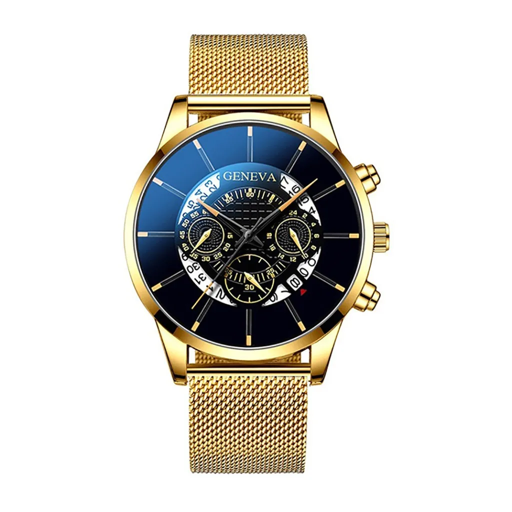 Мужские модные часы с сетчатым браслетом из нержавеющей стали, квар...