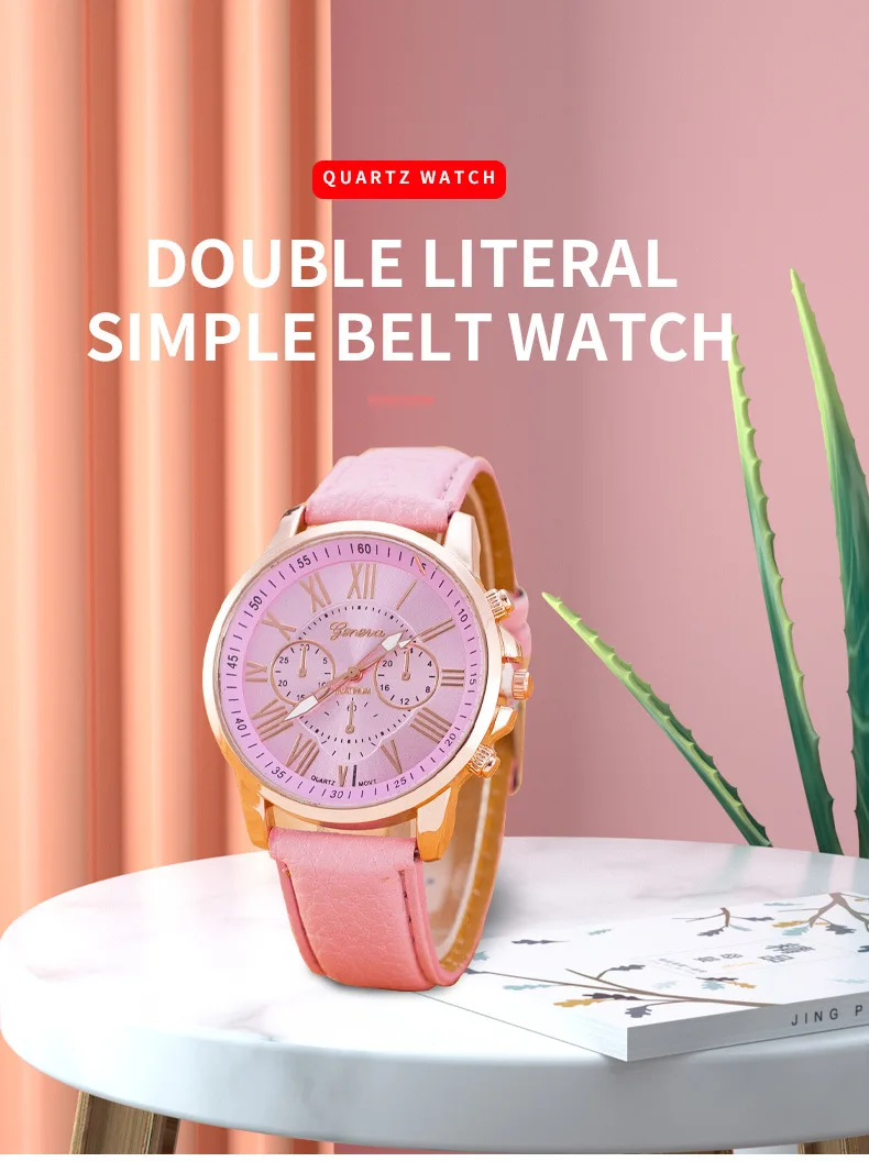 Модные Розовые двухслойные простые часы унисекс с ремешком, кварцевые часы, роскошный светильник для деловых женщин
