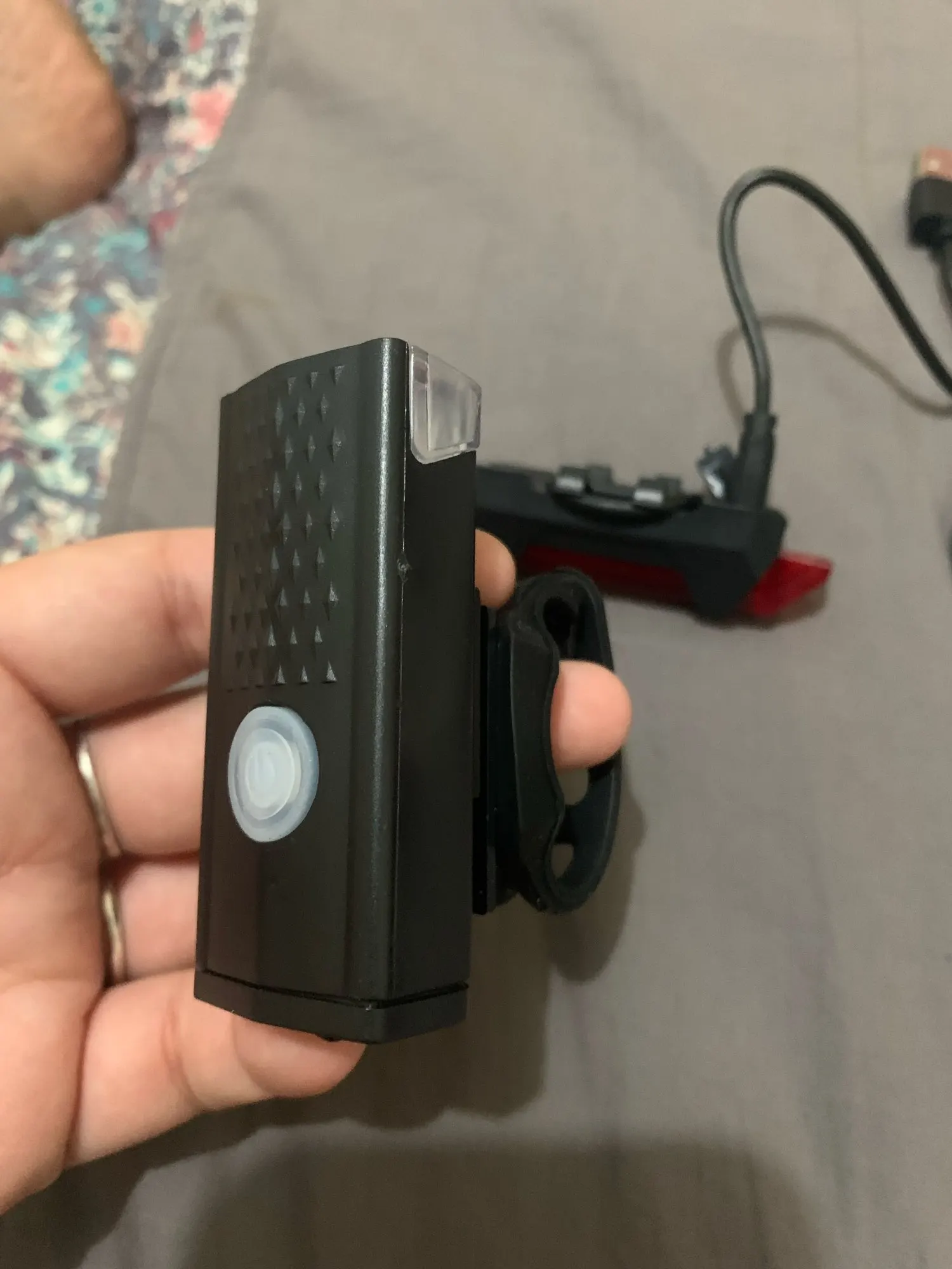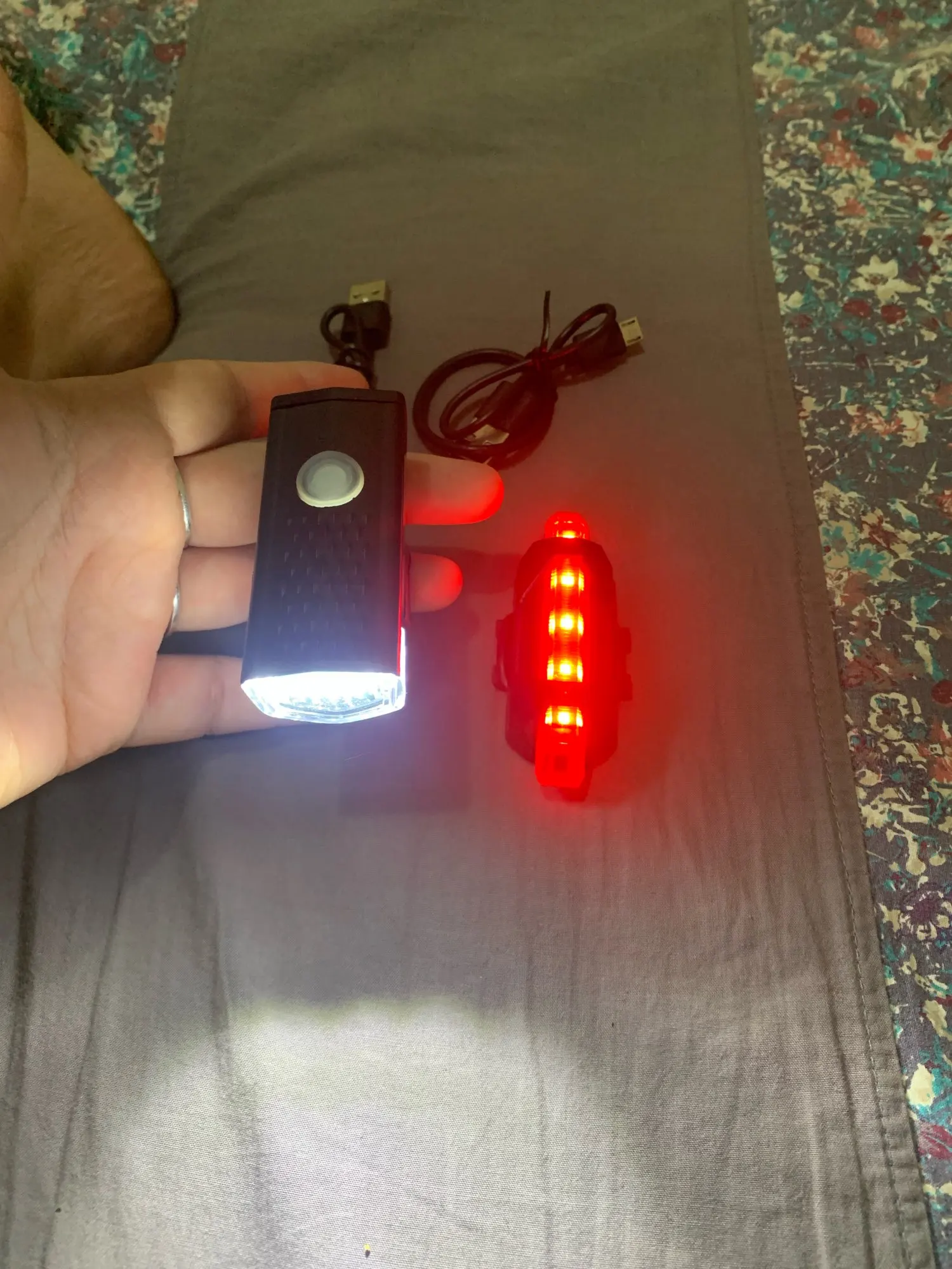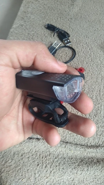 Фара не такая мощная, но подходит для цены продукта, является перезаряжаемой стандартной микро-usb, задняя часть также перезаряжается и видимый свет, включает usb-кабель, заряжается и работает нормально. Быстрая доставка и доставка вовремя.