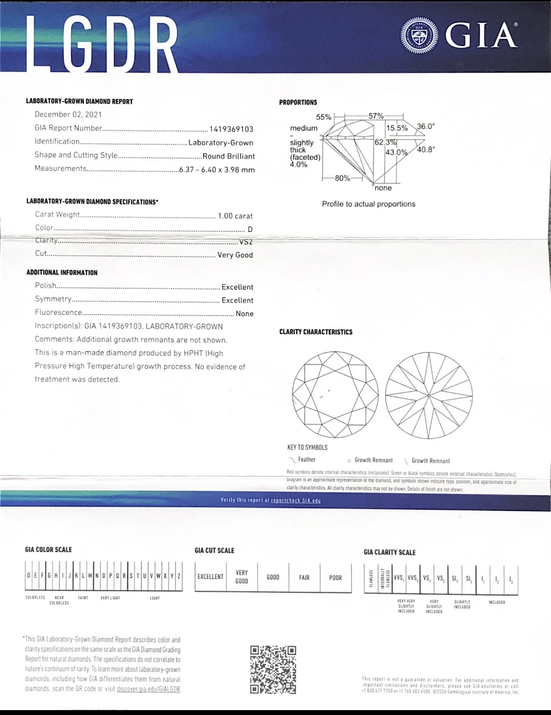 1 карат, 1,5 карата, D Цвет, VS VVS международный сертификат, лабор...