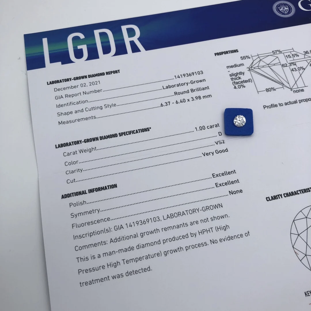 1,5-карат D цветной VVS1 четкость иги сертификат круглый HPHT лабор...