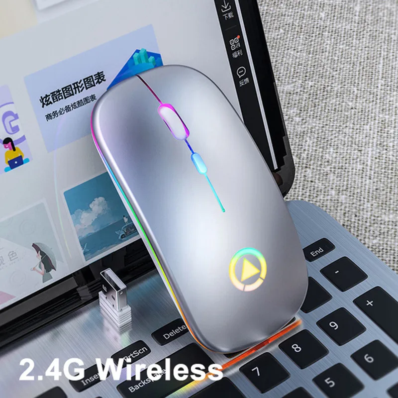 Мышь Компьютерная аккумуляторная Бесшумная с RGB-подсветкой и USB-портом