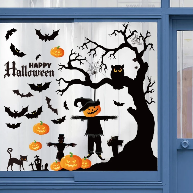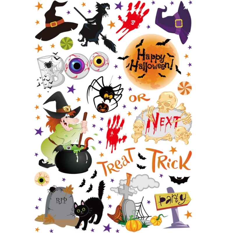 Съемные наклейки на стену на Хэллоуин, настенные наклейки с ужасами, ведьмой, тыквой, стеклами на окно для Хэллоуина, вечеринки, дома, наклейки на стену