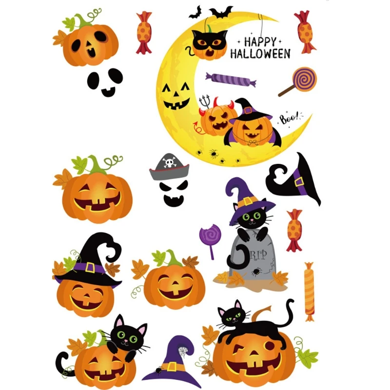 Съемные наклейки на стену на Хэллоуин, ужас, ведьма, тыква, окно, цепляется, для Хэллоуина, вечерние, для дома, пол, стены, стекло, наклейка