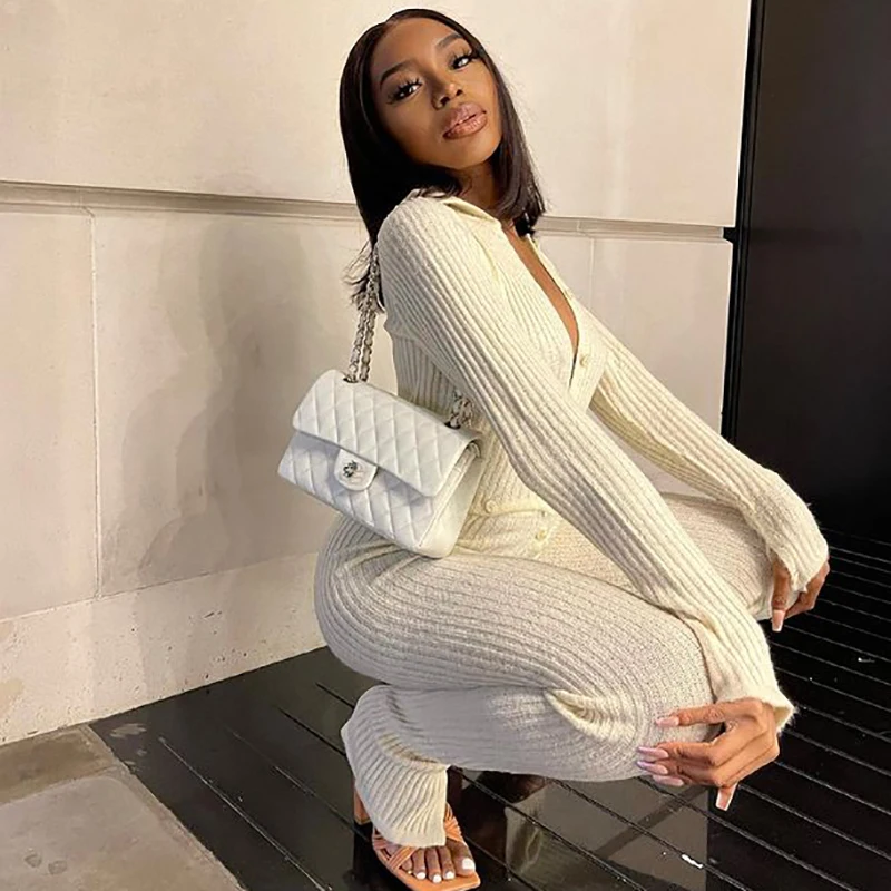 Simenual вязаный, на пуговицах ребристые женские Комбинезон Плотно ...