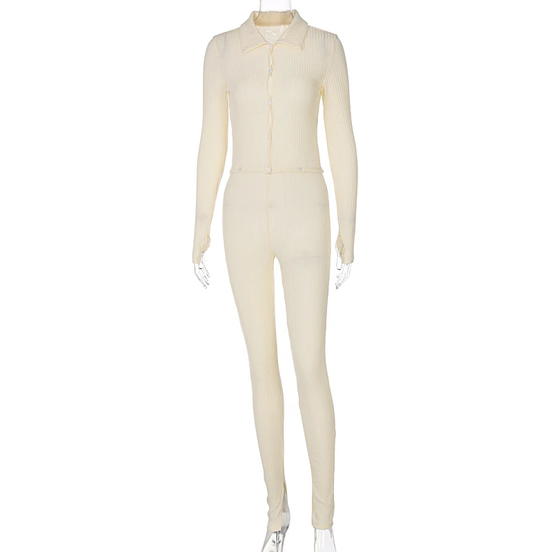 Комбинезон женский трикотажный, с длинным рукавом, на пуговицах