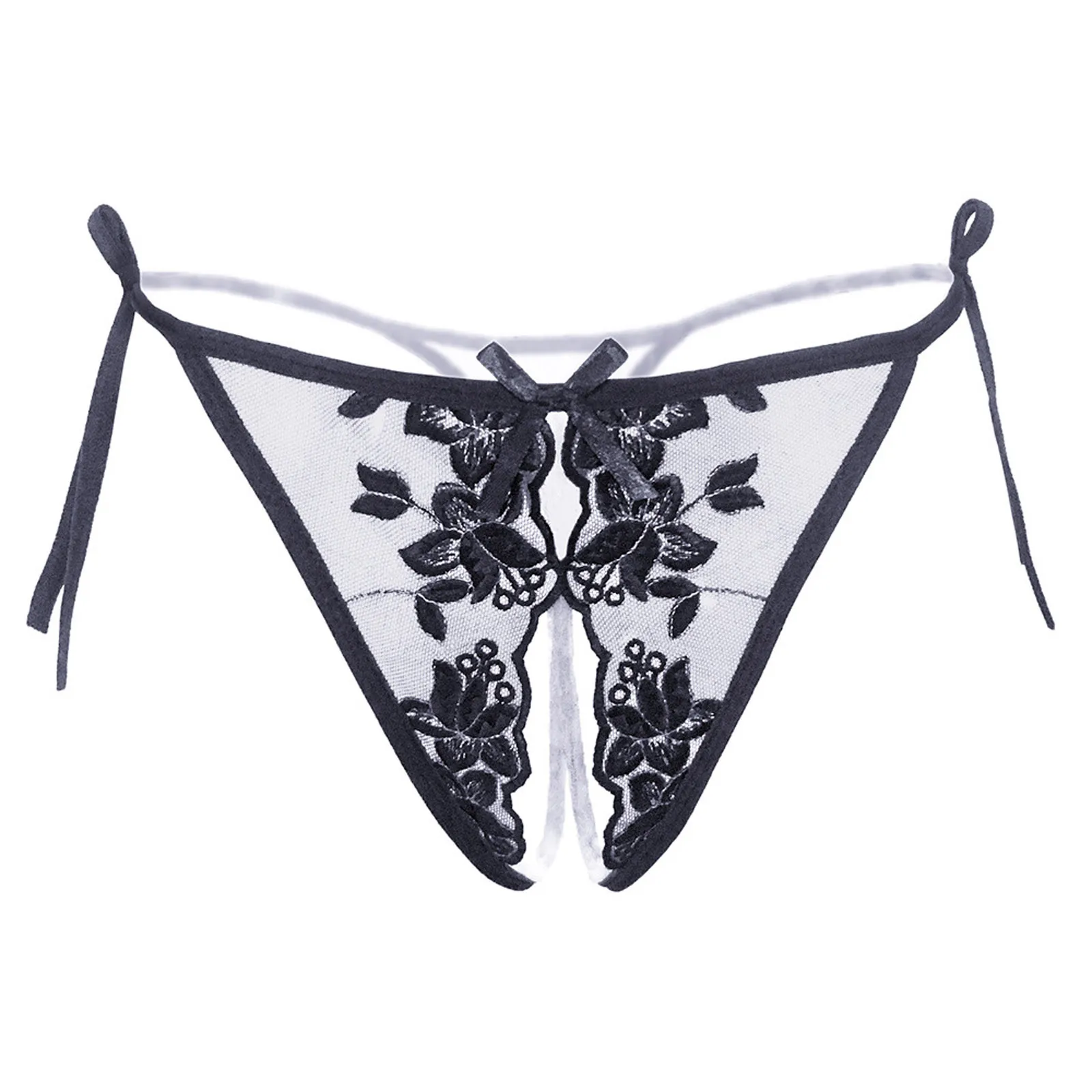 Женские сексуальные трусики с открытой промежностью, кружевные открытые трусики из спандекса с вышивкой и бантом, стринги без промежности для секса, Женские брифы для секса