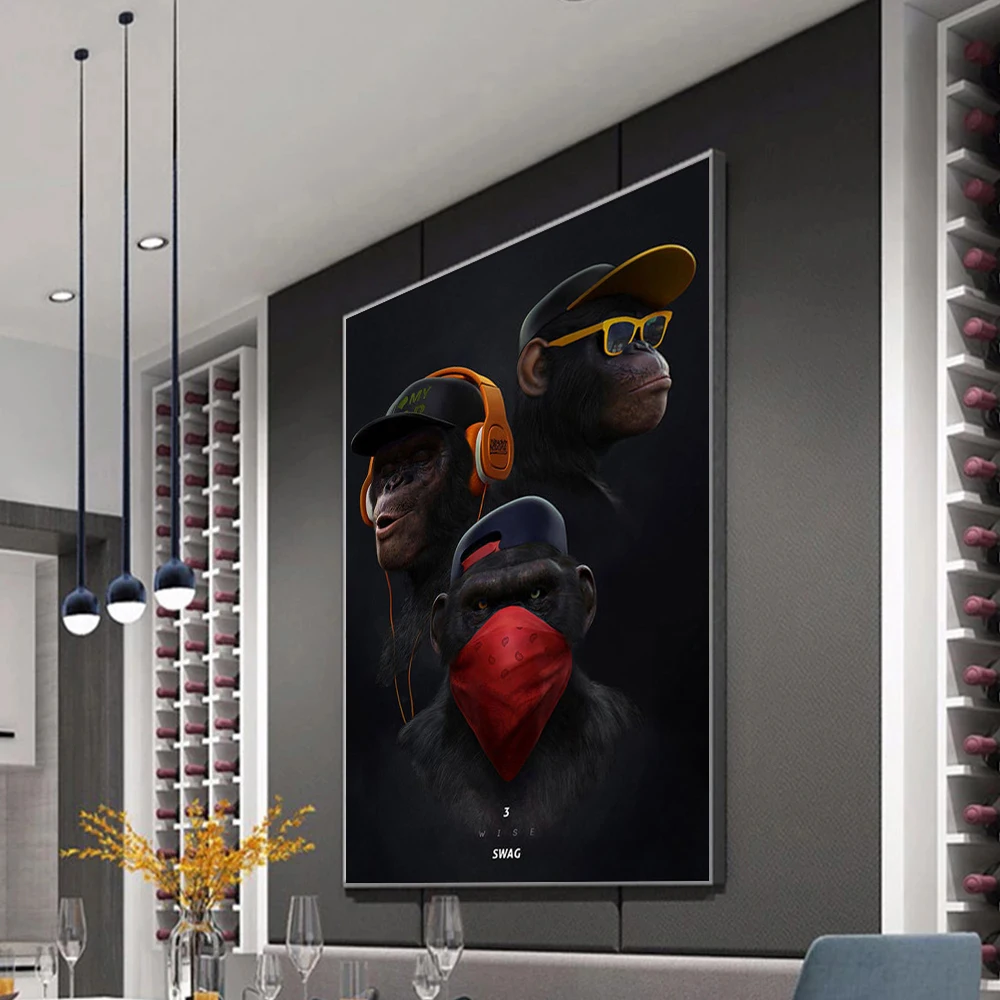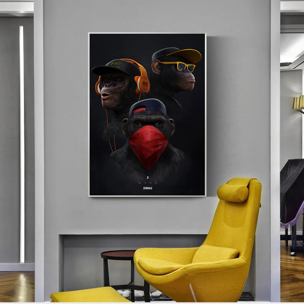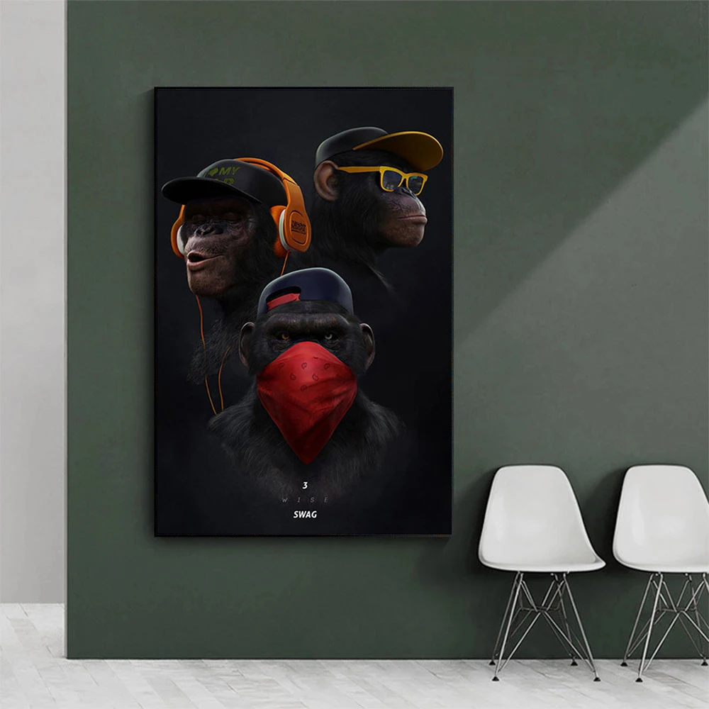 Современное искусство, три смешных обезьяны, холст, искусство на стене, картина для гостиной, скандинавский Декор для дома, без рамки