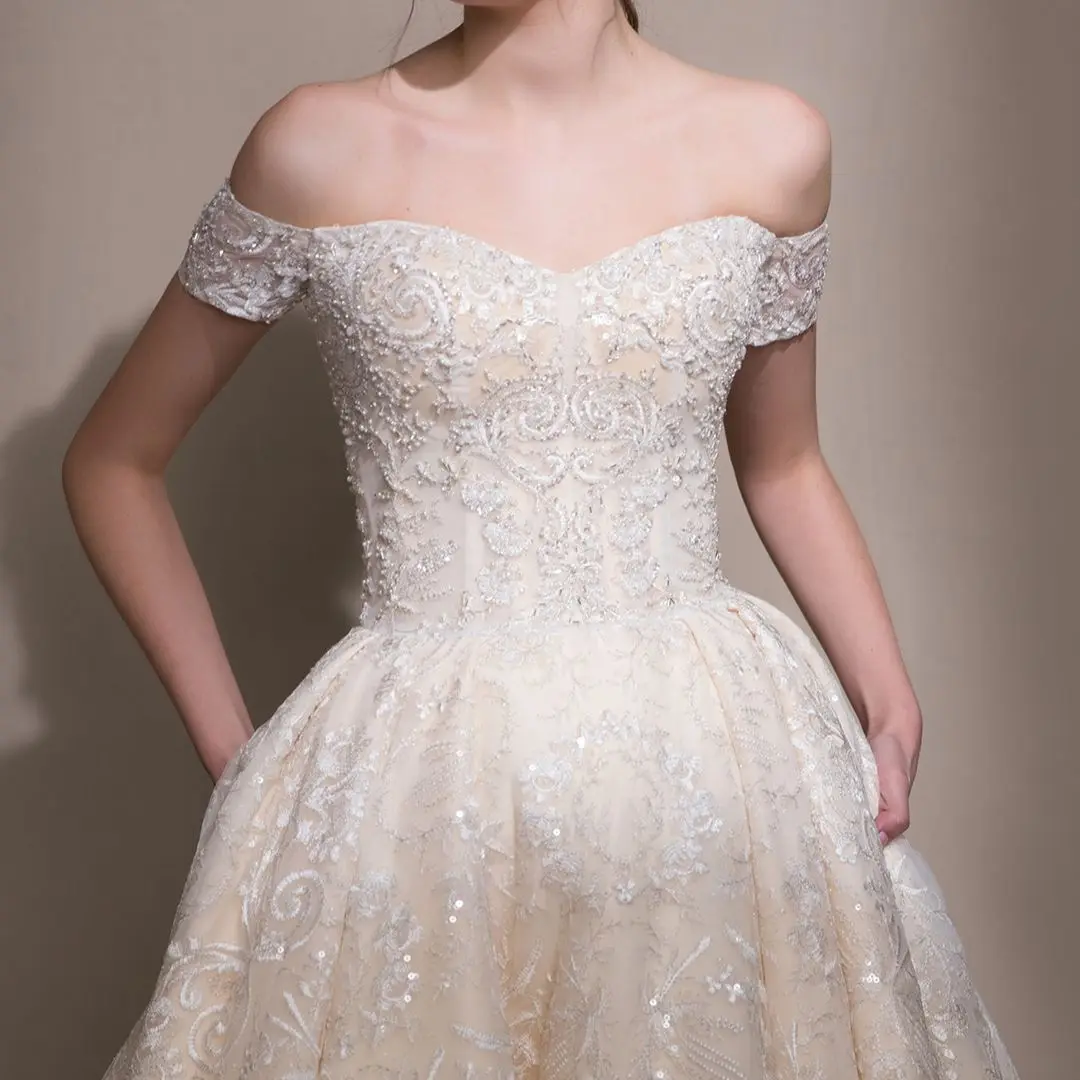 Роскошные свадебные платья в арабском стиле цвета шампанского со съ...