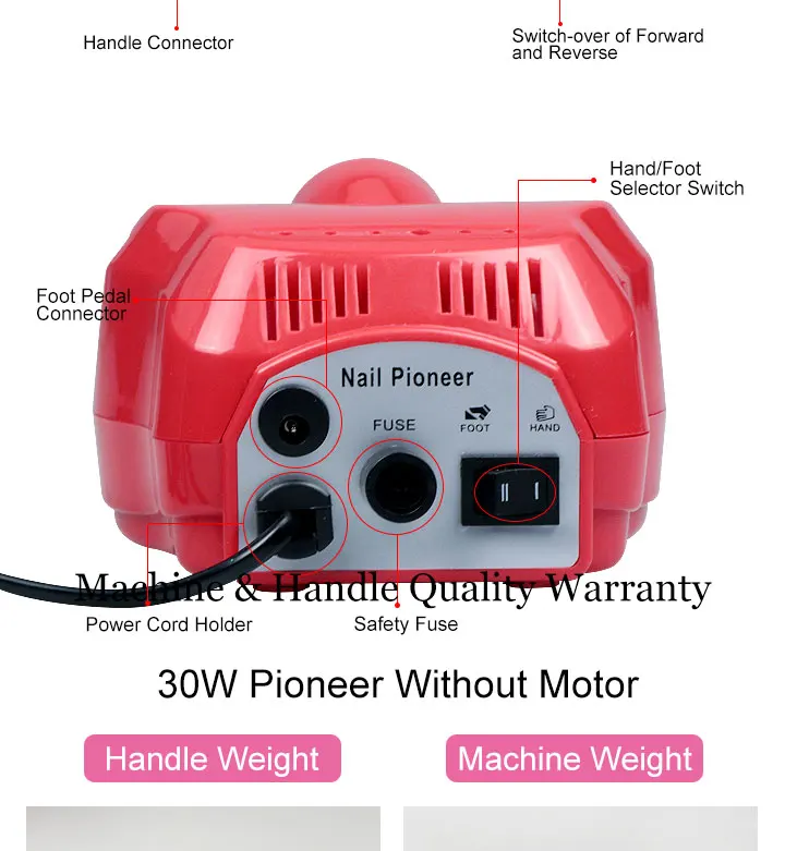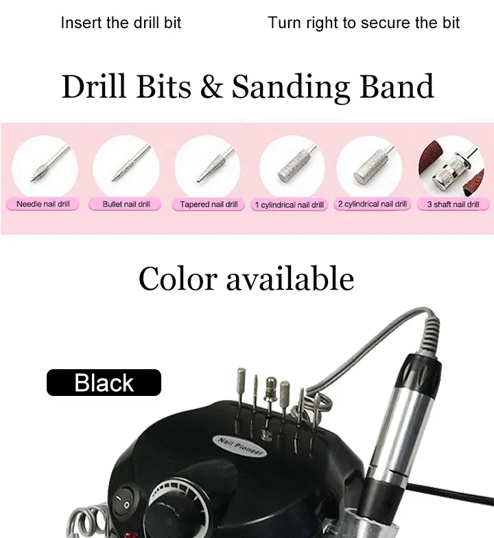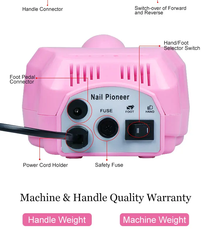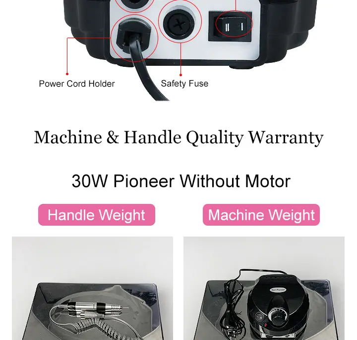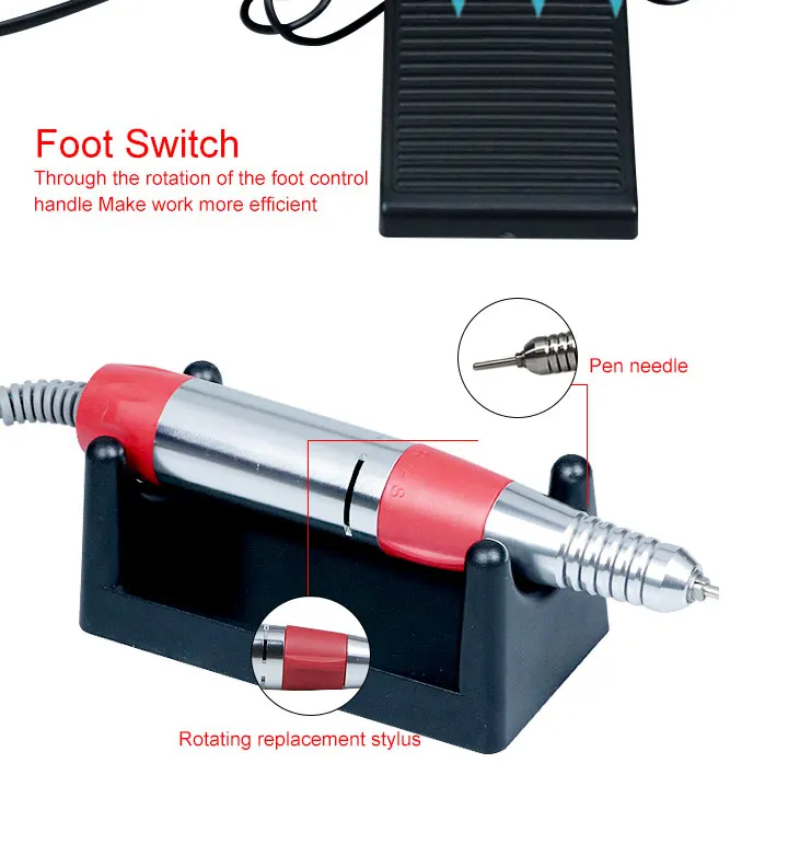 Станок электрический маникюрный, для шлифования и полирования ногтей, профессиональный 35000 обмин, с термозащитной рукояткой и набором сменных фрез