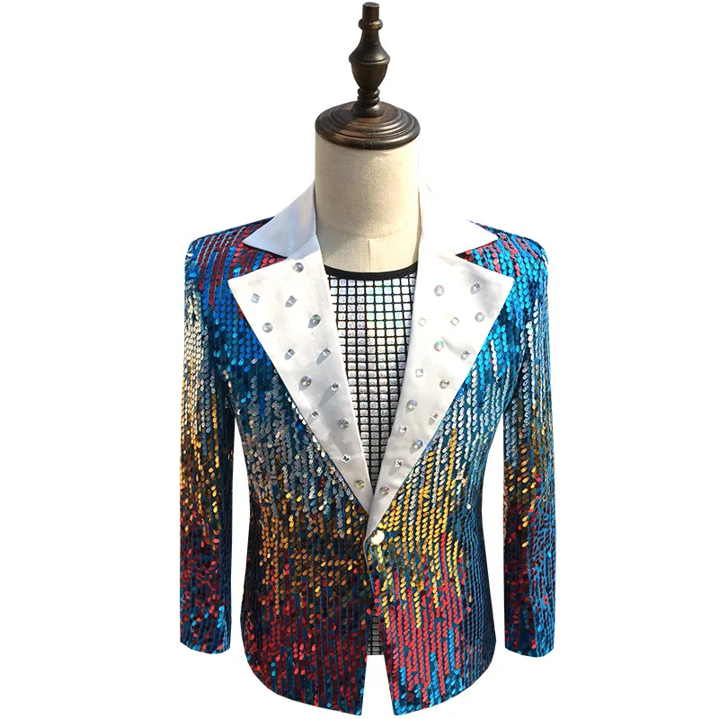 Мужской костюм с пайетками, приталенный стильный пиджак со стразами, смокинг, блейзер для сцены, вечерние костюмы для танцев, певицы, ночных клубов, Блейзер, Masculino