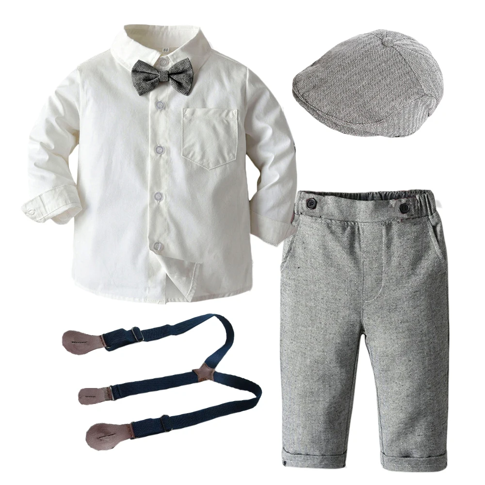 Комплекты одежды для новорожденных мальчиков, топы с длинным рукавом, жилетка, шапочка, комбинезоны, 4 шт., Осенняя детская одежда