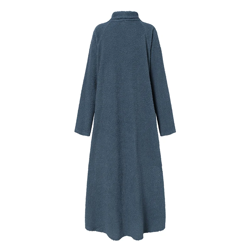 Модная Осенняя водолазка ZANZEA с длинным рукавом, плюшевое пушистое длинное платье, Женский свитшот, сарафан, однотонные свободные платья, женское платье